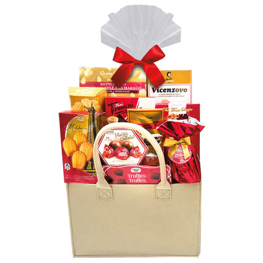 Détails Sac fourre-tout en feutre réutilisable; Rempli de délices sucrés et salés; Un cadeau charmant...