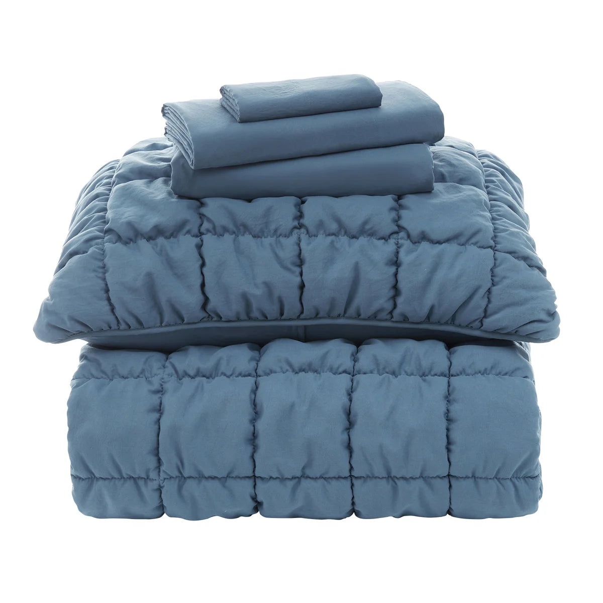 - Ensemble comprend : 1 douillette, 1 couvre-oreillers standard, 1 drap plat, drap-housse et 1 taie d'oreiller standard