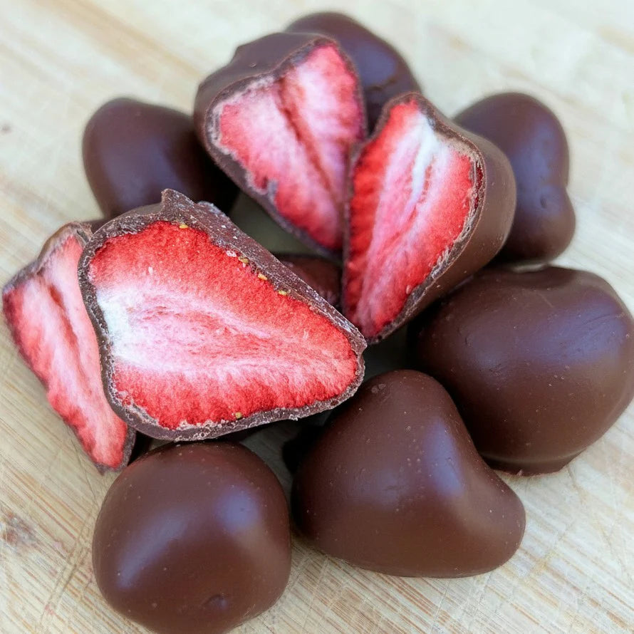 Fraises lyophilisées enrobées de chocolat (55g)